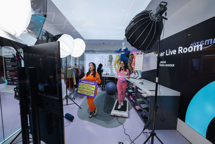 2023年11月23日,在浙江杭州举行的第二届全球数字贸易博览会丝路电商馆,跨境电商进行直播销售。新华社记者 徐昱 摄