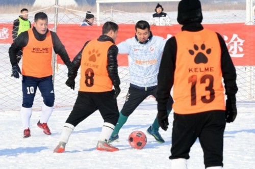 2024年1月7日,哈尔滨,“爱冰雪、迎亚冬、向未来” 2024哈尔滨市职工冰上龙舟、冰帆、雪地足球比赛,在九站公园松花江冰冻江段“职工冰雪乐园”举行。视觉中国供图