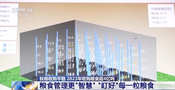 湖北省储备粮武汉储备库,24栋现代化粮仓一字排开。打开粮仓的仓门,看似平整的粮堆下,实则“大有玄机”,上百个温度传感器深埋其中,全天候监测粮堆内部的温度,数据直接传送到后台。粮堆里均匀分布的200个温度传感器,实时采集、分析、预警粮食温度、湿度。粮仓外,虫害监测设备十分显眼,粮堆的15个点位里预埋了探头,可以实时监测粮仓里的虫害情况。目前,湖北省已完成213个国有粮库的信息化改造,对承储省市县三级地方储备的134个粮库进行了监管信息化升级。