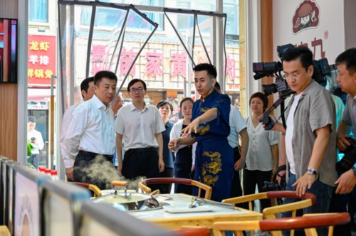 无锡市委书记杜小刚到李彦明的餐饮店里调研。无锡日报供图
