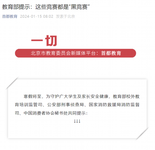 寒假将至,为守护广大学生及家长安全健康,教育部校外教育培训监管司、公安部刑事侦查局、国家消防救援局消防监督司、中国消费者协会秘书处共同提示: