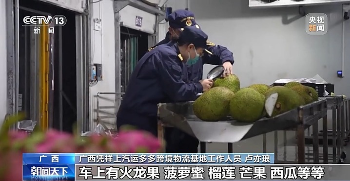 新年伊始,广西凭祥友谊关口岸的跨境车辆川流不息。友谊关口岸是进口东盟水果的主要通道,在这里可以看到越南榴莲、火龙果、西瓜,品类十分丰富。