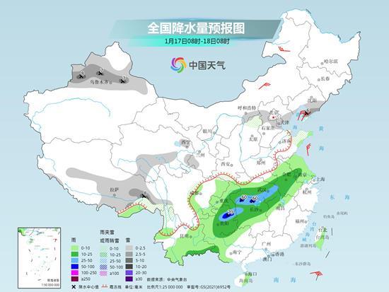 今起三天(1月17日至19日),中东部大范围雨雪仍在持续,其中西南地区东部、江汉、江淮等地雨势较强,局地或有暴雨。气温方面,今天中东部大部气温还将继续回升,尤其是江南南部等地最高气温可达20℃或以上,暖意融融,不过明天起,冷空气将给各地陆续带来降温,本周末中东部将上演冷暖大逆转。