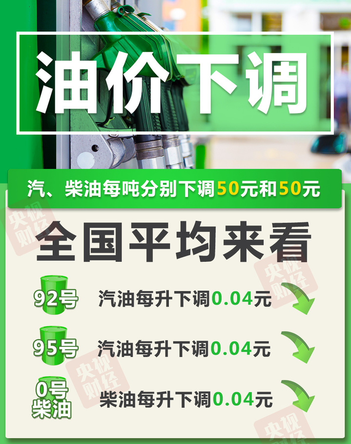 95号汽油每升下调0.04元;