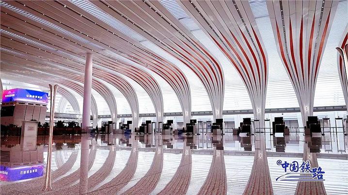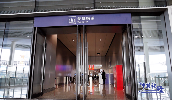 便捷换乘专用通道:车站采用便捷换乘专用通道及线下换乘候车厅相结合的方式,使用高架连廊开设便捷换乘专用通道。旅客可以通过高架候车层南北进站扶梯和垂梯到高架层进行便捷换乘,无需出站后再次进站。
