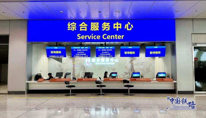 综合服务中心:取消售票窗口的玻璃隔断,拉近旅客和工作人员间的距离,更便于交流和快速办理业务;除了车票退改等服务,同时也兼备咨询、求助和重点旅客预约等相关业务。