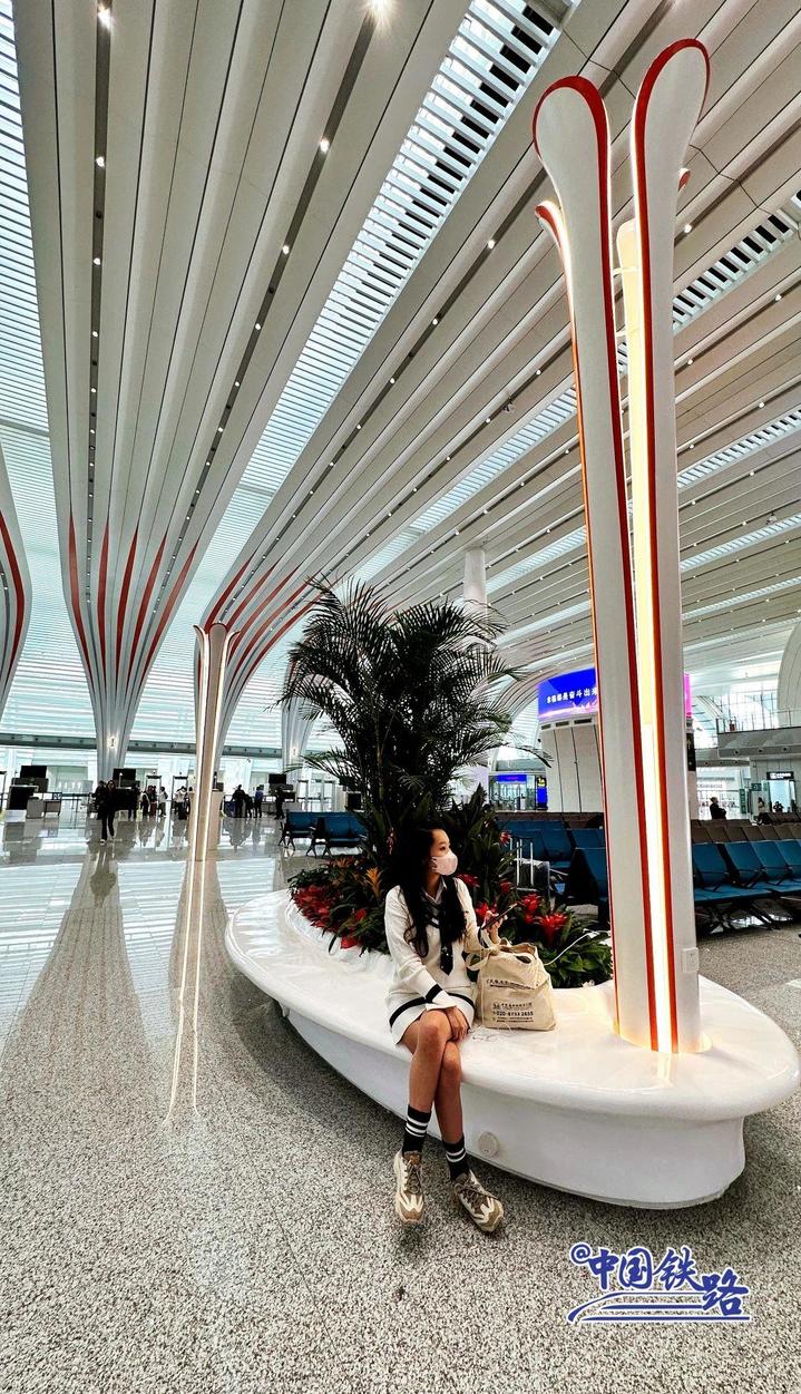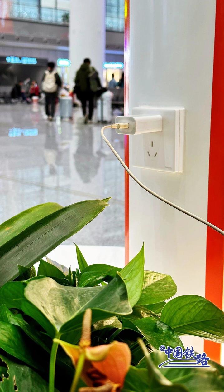 花瓣灯柱:候车室共有24个灯柱(南北各12个),每个灯柱配有两处充电插孔,方便旅客手机充电。