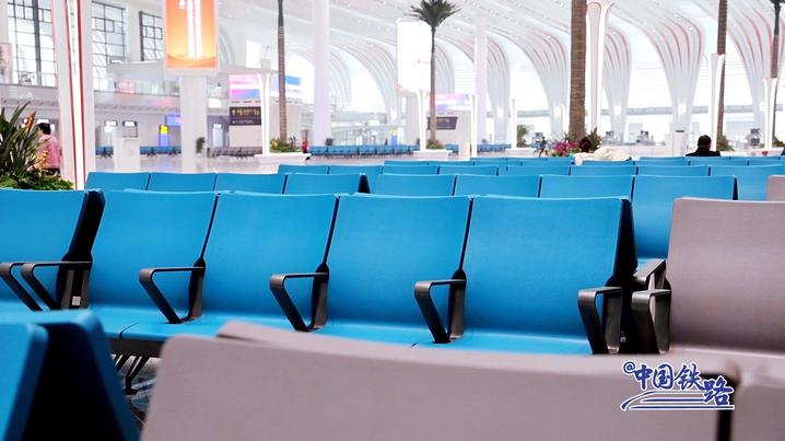 候车座椅:以海底蓝为主体色调,采用一体化设计,符合人体工学,倾斜角度能让旅客更加舒适。同时,一体化的设计更方便清理保洁和后续维修。