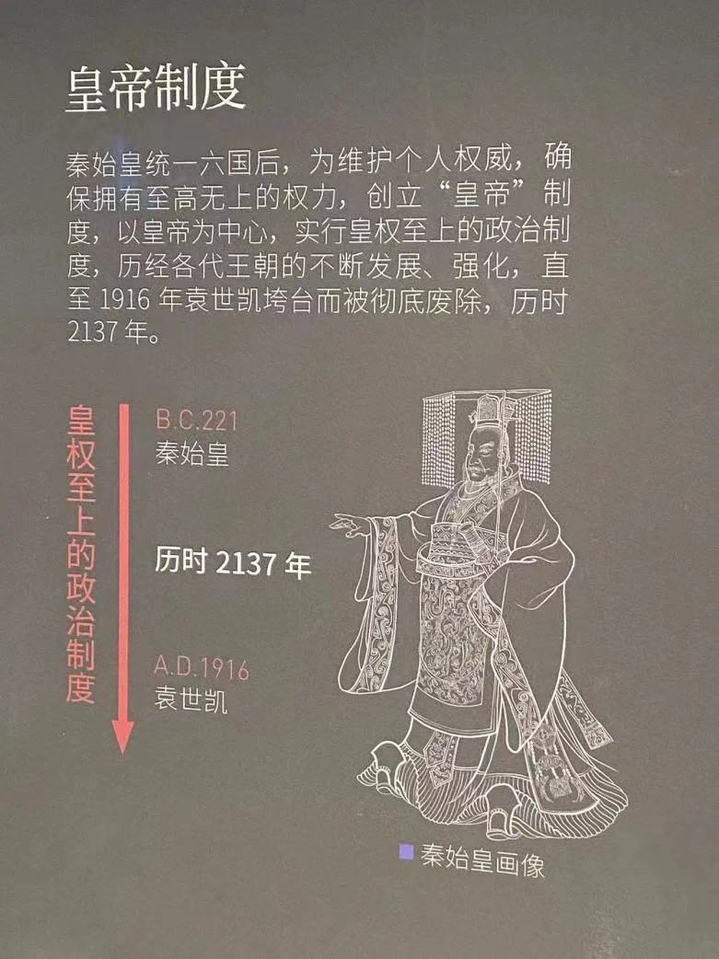 陕历博秦汉馆中的展板标明皇帝制度结束于“袁世凯”。图源:“今西安”微信公众号