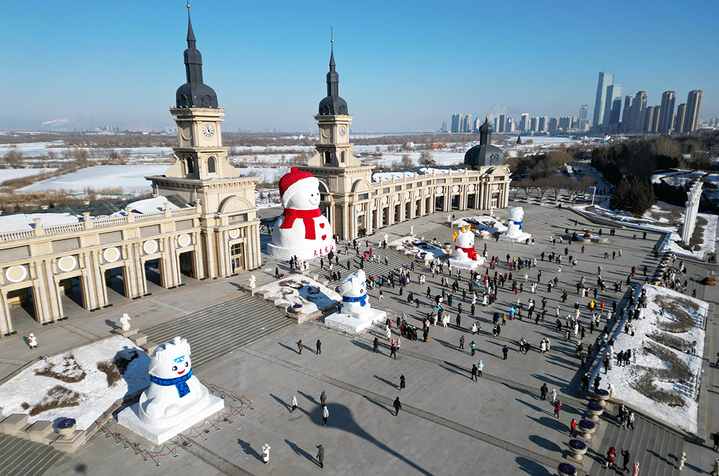 这是12月17日拍摄的哈尔滨大雪人(无人机照片)。新华社 资料图