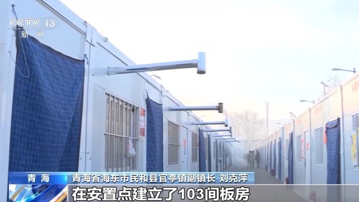 青海省海东市民和县官亭镇副镇长 刘克萍:我们目前这个安置点是一共安置了94户444人,在安置点建立了103间板房。这103间板房包括党群工作站、医疗站、消防站、警务室和盥洗间。