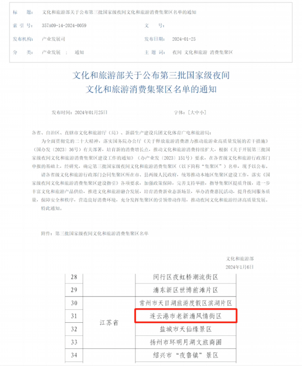 近日,文旅部公示了第三批国家夜间文化和旅游消费集聚区名单,确定了102个国家级集聚区,老新浦风情街区跻身其中。这是我市文旅系统再次荣获国家级荣誉。