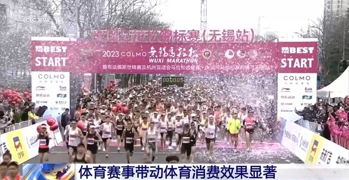 不仅仅是冰雪产业,在一系列体育赛事的带动下,以体育旅游为代表的体育消费火热出圈。2023年我国全年共举办路跑赛事580场,参赛总人次550万。以无锡马拉松为例,仅一场比赛就带动交通、餐饮、住宿等相关业态,实现经济效益1.95亿元;此外,端午龙舟赛、扎根基层的村超、村BA等,都成为超越体育引发全民关注的文化现象。成都大运会、杭州亚运会等国际综合体育赛事的举办,也带动主办城市体育消费快速增长。