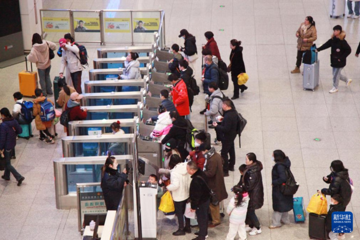 1月26日,旅客在徐州东站排队检票乘车。当日,2024年春运启动。2024年春运从1月26日开始,至3月5日结束,为期40天。
