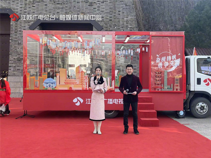 1月27日,江苏广电总台《奋楫扬帆勇争先》新闻快闪车环省行活动亮相宿迁项王故里,继续开启环省行旅程。现场吸引了大量市民游客打卡留念,还有写春联、送"福"字活动。