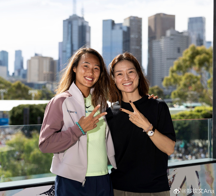 参加元老赛的李娜,特意为在澳网上取得好成绩的郑钦文送去祝福。 图/郑钦文微博