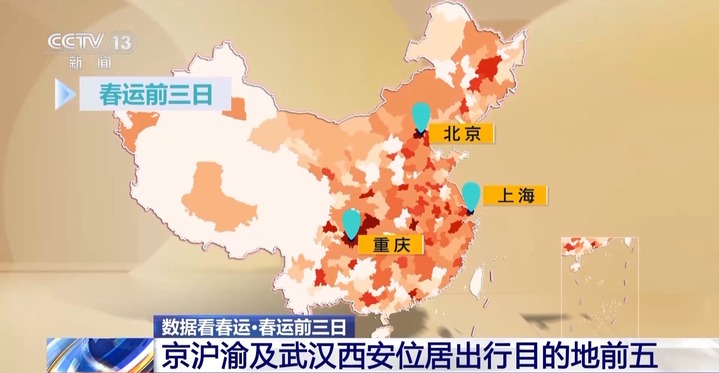从12306售票数据看,春运前三天,北京、上海、重庆、武汉、西安一直稳居出行目的地排行榜的前五名。和春运首日相比,今天(28日)这五个城市的到达量增加了30%,其中北京、上海增幅最大,人数增加了50%。