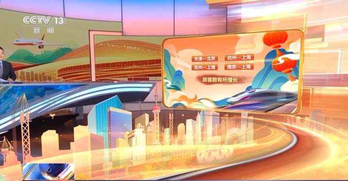 从区域流动来看,今天与春运第一天相比,天津至北京,杭州至上海,苏州至上海,南京至上海这几条线路的旅客数有所增长。