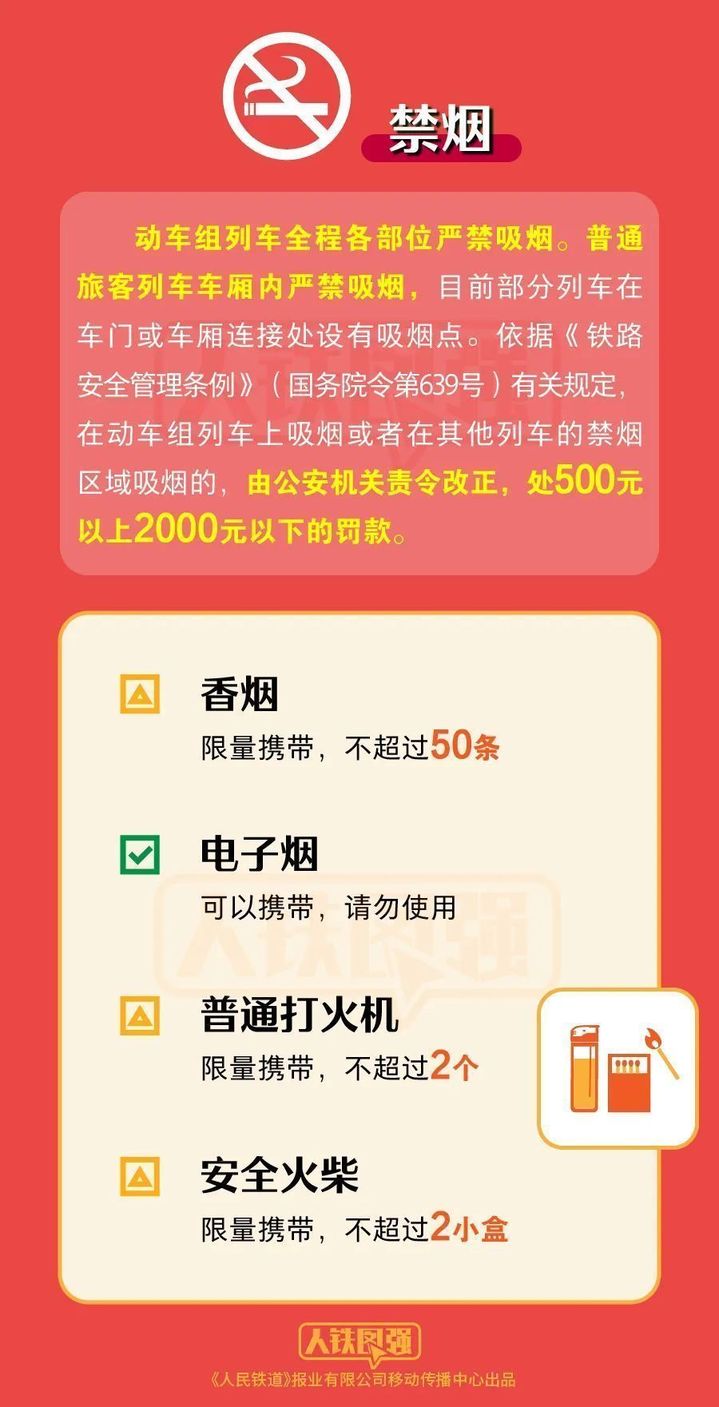 活鸡活鸭禁止携带上车,但密封包装好的鸡、鸭、腊肉、海鲜等生鲜年货可携带上车。