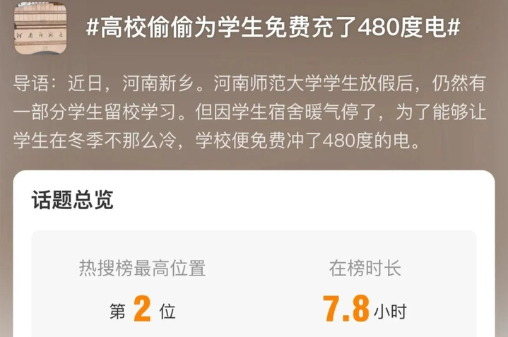 近日,一所为学生免费充480度电的高校冲上热搜。