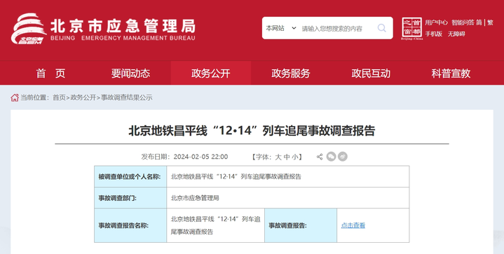 荔枝新闻讯 2月5日,北京市应急管理局网站公布北京地铁昌平线“12·14”列车追尾事故调查报告。