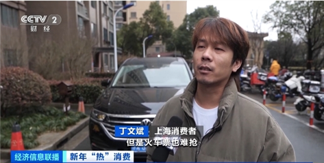 上海消费者 丁文斌:临近春节准备回家,但火车票难抢。租了辆7座车,家里的人比较多,走亲访友这样方便一点。