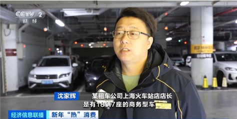 某租车公司上海火车站店店长 沈家辉:门店有18辆7座的商务型车。春节的价格比去年增长10%左右。虽然说价格增长了,但是预订率还是比较高的。