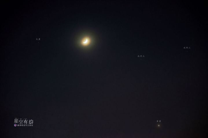 由于火星和残月的亮度不高,地平高度也都很低,再加上天色即将变亮,观赏这幕“双星伴月”的窗口期会比较短暂,甚至还不到半个小时。