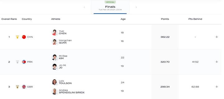 最终,陈芋汐/全红婵还是以断层优势夺冠,两人再次展现了在该项目上的统治力。同时,这也是全红婵本届世锦赛第2金。