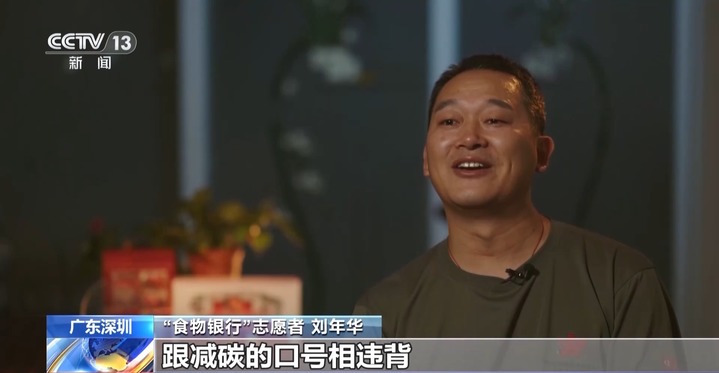 “食物银行”志愿者 刘年华:实际上超市商场剩下的这个食物还是非常不错的,丢到垃圾桶又不环保,又不节能,这是浪费的,跟减碳的口号相违背。