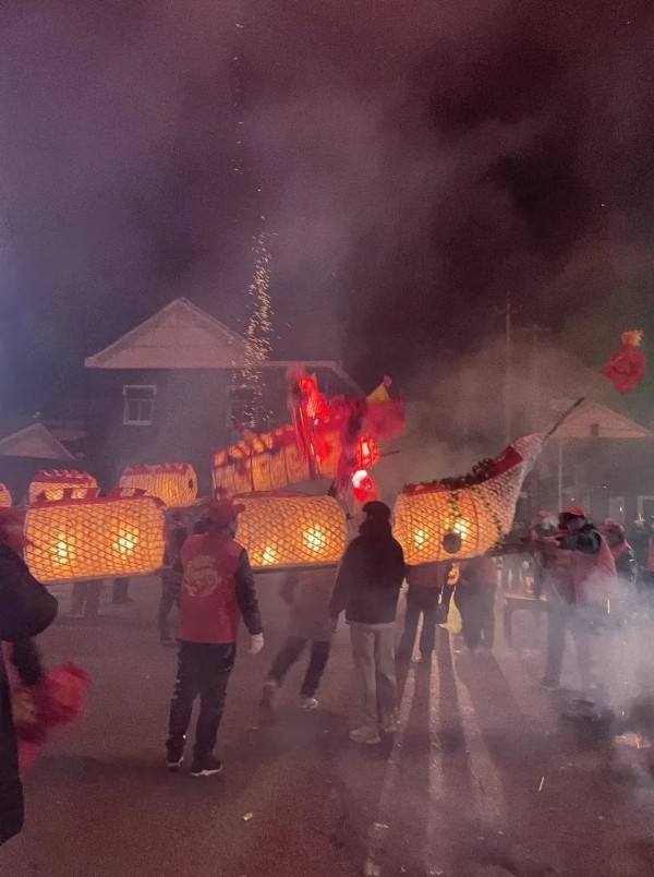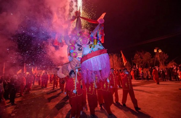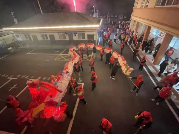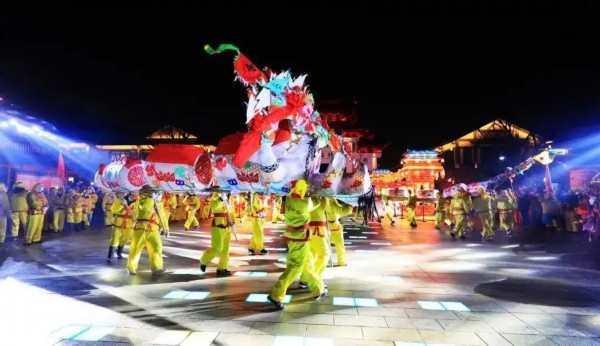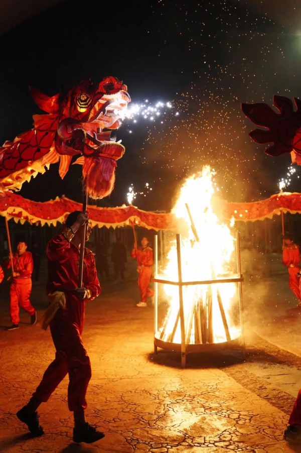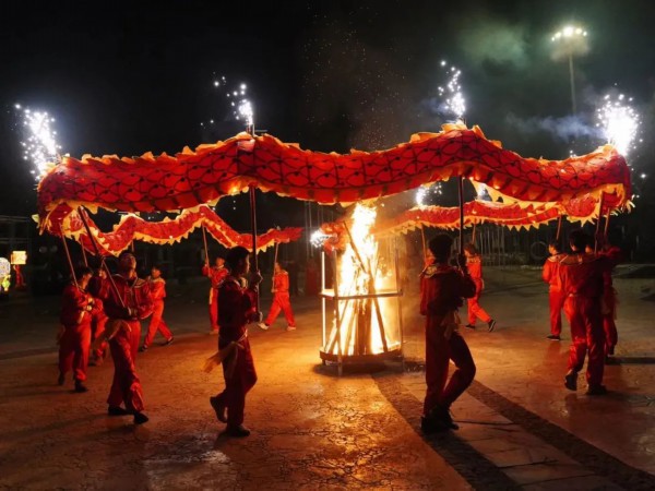到了晚上篝火晚会,白天的“金龙”升级为“火龙”,时而盘旋飞舞,时而翻江倒海,时而腾飞跳跃,时而喷出火花……彩龙仿佛真的拥有了生命,向游客传递新春喜庆与祝福。