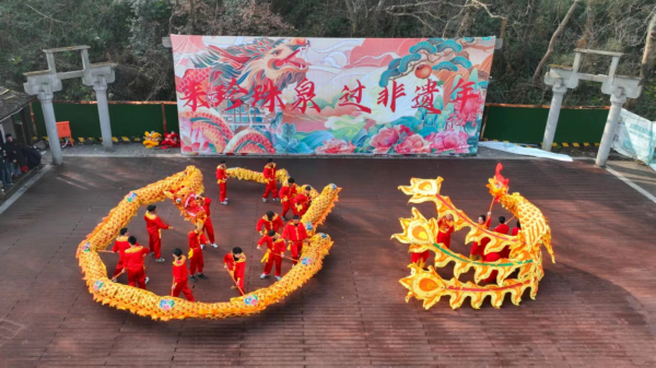 每逢春节,石湫街道桑园蒲村就会上演声势浩大的舞龙灯,四条龙灯齐舞,祈盼新年风调雨顺、五谷丰登。