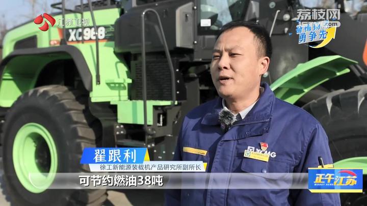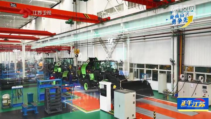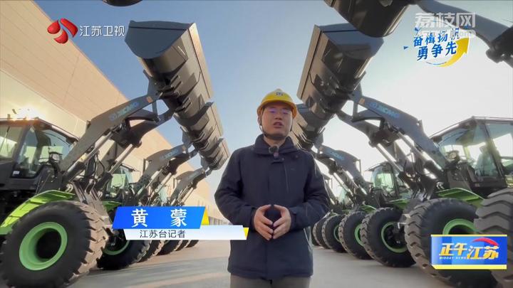 江苏台记者黄蒙:“这里是徐工,去年11月全球首条新能源装载机生产线在这里投产,每25分钟就有1台新能源装载机从这里生产下线。从外形上看,它们与燃油装载机没有太大区别,不过,它们的绿色皮肤表明它们拥有一颗强劲的电能心脏。”