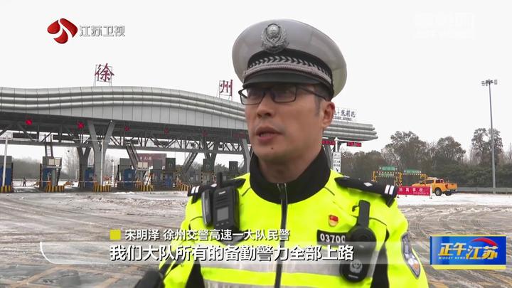 徐州交警高速一大队民警宋明泽:“我们大队所有的备勤警力全部上路,配合路政和养护部门对道路的积雪进行清扫和除冰作业。”
