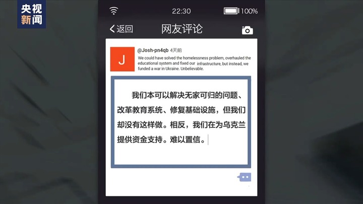 网友评论:我们本可以解决无家可归的问题、改革教育系统、修复基础设施,但我们却没有这样做。相反,我们在为乌克兰提供资金支持。难以置信。