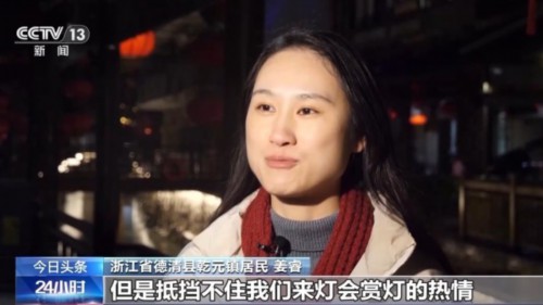 浙江省德清县乾元镇居民 姜睿:虽然天气也挺寒冷的,但是抵挡不住我们来灯会赏灯的热情。花灯璀璨,流光溢彩,各式各样的花灯也寄托了喜庆、幸福与吉祥。