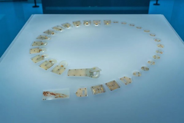 出土于1号墓,是迄今为止国内出土的唯一一套最完整的十三环蹀躞金玉带,也是迄今发现等级最高、皇帝御用的带具,填补了中国古代舆服考古史的一项空白。