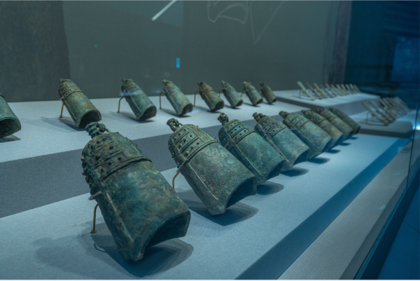编钟、编磬在隋唐时期是宫廷乐器。《隋书·音乐志下》:“二曰编钟,小钟也,各应律吕,大小以次,编而悬之,上下皆八,合十六钟,悬於一簨簴。”《旧唐书》记载:“高祖登极之后,享宴因隋旧制,用九部之乐,其后分为立坐二部。”钟、磬是乐器之尊,它们的使用具有严格的等级性。