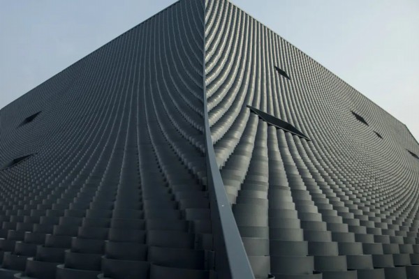 值得一提的是,这构成建筑表皮的定制铝板瓦,每一片背后的小小一角,都以简体正楷铸刻了“隋世祖”三个字。“世祖”是相对中性的庙号,表明对历史先人的敬畏。