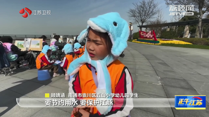 南通市崇川区五山小学幼儿园学生顾靖涵说:“要节约用水、要保护江豚,洗手的时候可以把水龙头开小一点,洗完脸的水可以再次利用。”