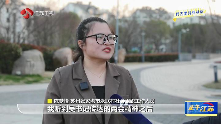 苏州张家港市永联村社会组织工作人员陈梦怡说:“我听到吴书记传达的两会精神之后,感到振奋人心。在永联这个平台上能够发挥自己专业所长,立足于当地的实际提升永联村老百姓的生活质量和生活水平。”