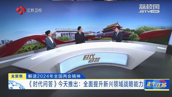 3月24日,江苏广电总台电视理论访谈节目《时代问答》推出解读2024年全国两会精神特别节目《全面提升新兴领域战略能力》。节目围绕习近平主席在解放军和武警部队代表团关于“新兴领域战略能力”的重要讲话精神,邀请相关专家做客演播室进行深入解读。
