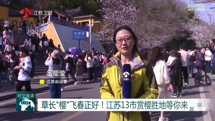 江苏台记者吕莹莹:“盛开的樱花,古鸡鸣寺、玄武湖、明城墙,层次分明又完美融合,随手一拍就是一幅如画美景。”