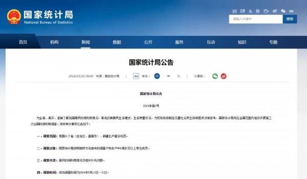 据了解,2024年2—4月为调查准备阶段,主要是选聘培训调查员,研发部署调查软件等,目前,南京已经着手开展相关筹备工作,为调查做足准备。现场调查开始后,调查员将佩戴工作证件入户,发放《致全国时间利用调查对象的一封信》,向被抽中的调查对象介绍第三次全国时间利用调查的内容和意义,请调查对象积极支持配合政府统计调查工作,如实、按时填报相关信息,提供真实、完整的调查资料。