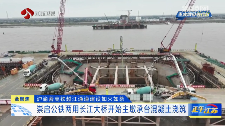 【崇启公铁两用长江大桥开始主墩承台混凝土浇筑】
