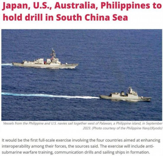 菲美日澳今将在南海举行首次全面海上军演,菲媒炒作“抗衡中国”