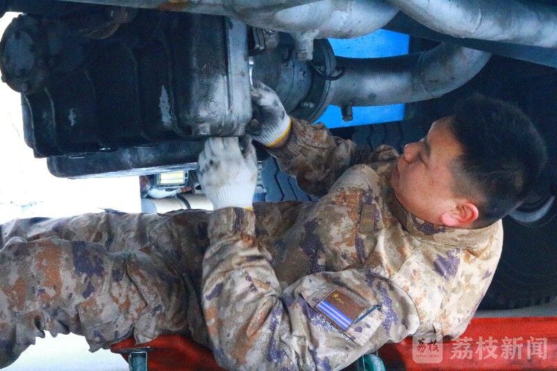 官兵们精心检查车辆的发动机情况,更换全新的滤清器和橡胶圈,加注适量的新机油、转向助力油、变速箱油、离合器油和刹车油,为战车注入新的血液,焕发全新活力。