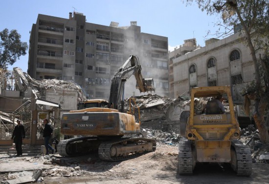 图为4月2日在叙利亚首都大马士革拍摄的伊朗驻叙利亚大使馆领事部门建筑遭袭现场。新华社发(阿马尔·萨法尔贾拉尼摄)
