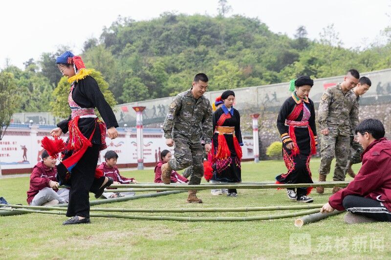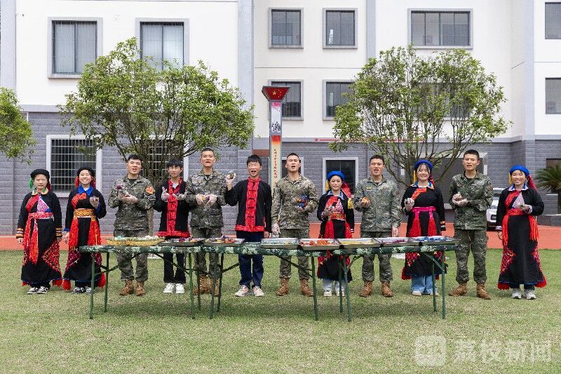 在草坪上,官兵和师生们共同体验了跳竹竿舞、制作五色米饭、唱山歌、碰彩蛋等三月三特色活动,现场欢声笑语,节日氛围浓厚。