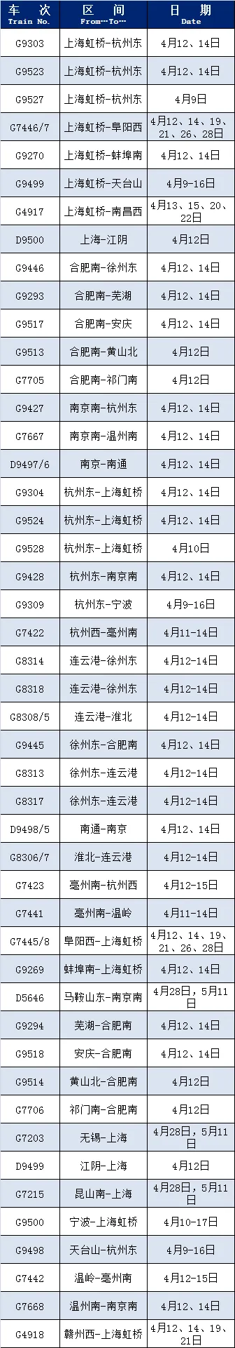 客运方面,新图增开杭州东至上海虹桥G7302次、上海虹桥至杭州东G7309次旅客列车1对;原上海往来宿迁的G8264/G8263次调整运行区段为上海往来盐城。
